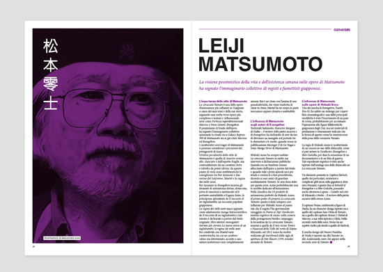 Infine vi presento Genesis - I maestri che hanno ispirato le opere del regista Hideaki Anno, volume che, oltra a raccogliere numerose illustrazioni originali realizzate da artisti italiani, ci parla dei maestri che hanno influenzato il genio di Anno. Tutte le pubblicazioni EVA IMPACT sono curate da Ilaria Azzurra Caiazza, Filippo Petrucci e da me medesimo. La particolarità di Genesis sono i bellissimi ritratti realizzati con tecniche tradizionali da Alessandro e Jacopo Gori.